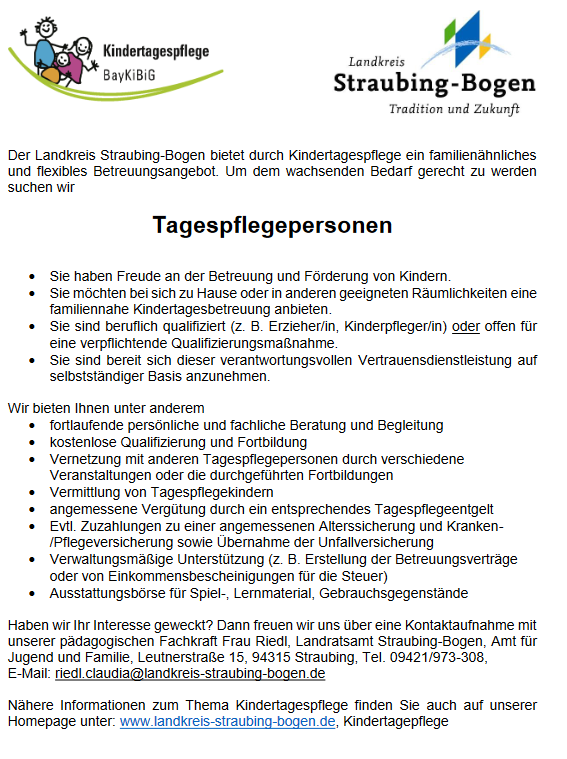 stellenanzeige.Kindertagespersonal